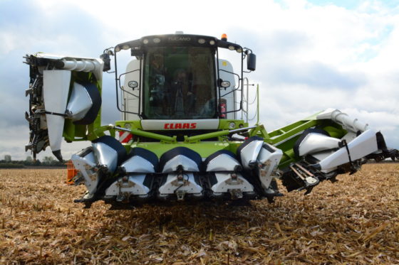 Het grote verschil met de vorige versies van de Claas maisplukker is niet alleen de nieuwe naam, maar vooral de kleine hoek waaronder de mechanisch aangedreven plukker zijn werk doet. Die 17 graden hoek, zorgt ervoor dat er minder kolven naar voren springen en zo verloren gaan.